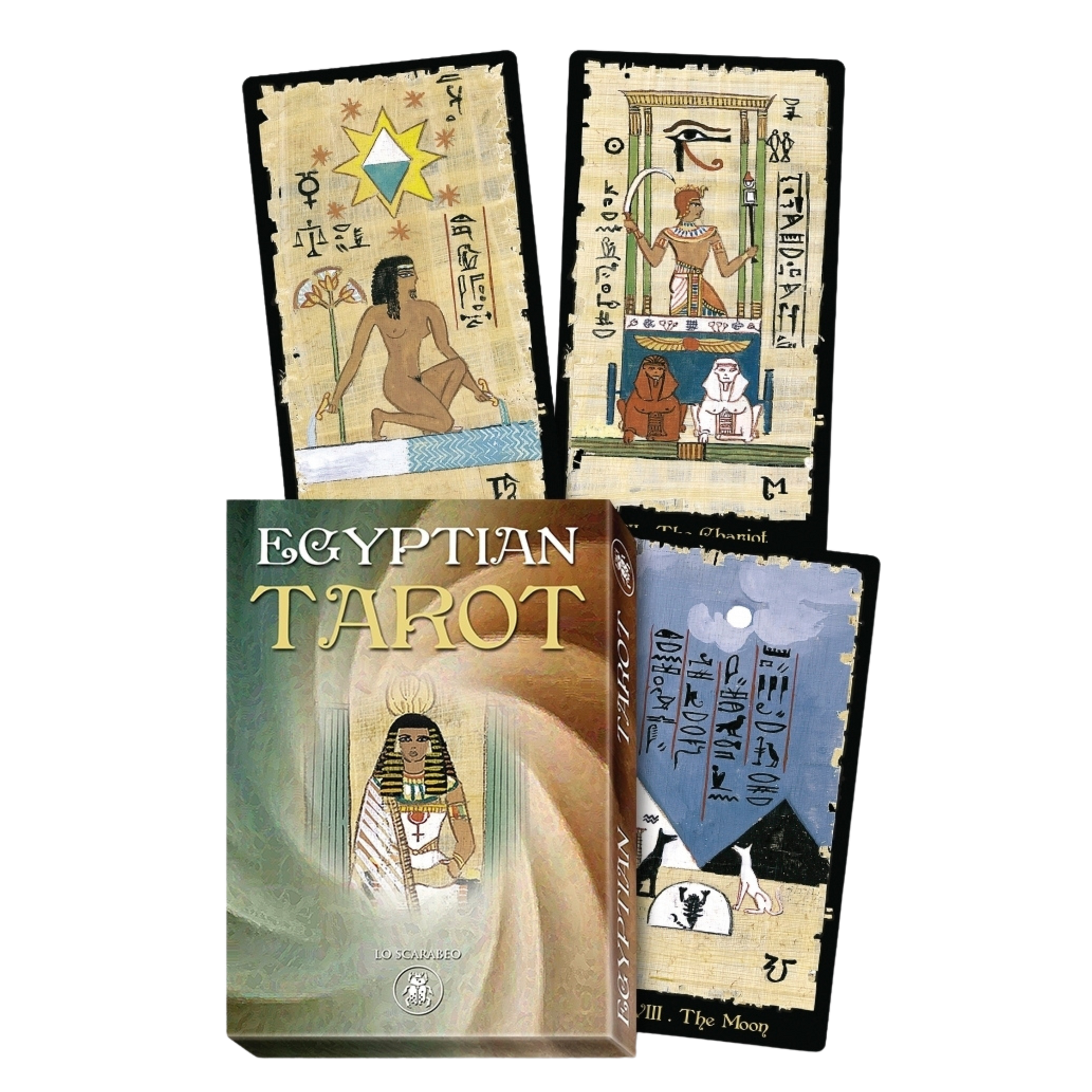 Featuring stunning watercolor paintings on papyrus from the Nile, these images contain the mysteries of Egyptian magic. If the legends are true and tarot was born in ancient Egypt, then this deck bears symbols and imagery that go back thousands of years. Newly updated and printed on the highest quality cardstock with improved graphics, revised instructions, and a hard box.