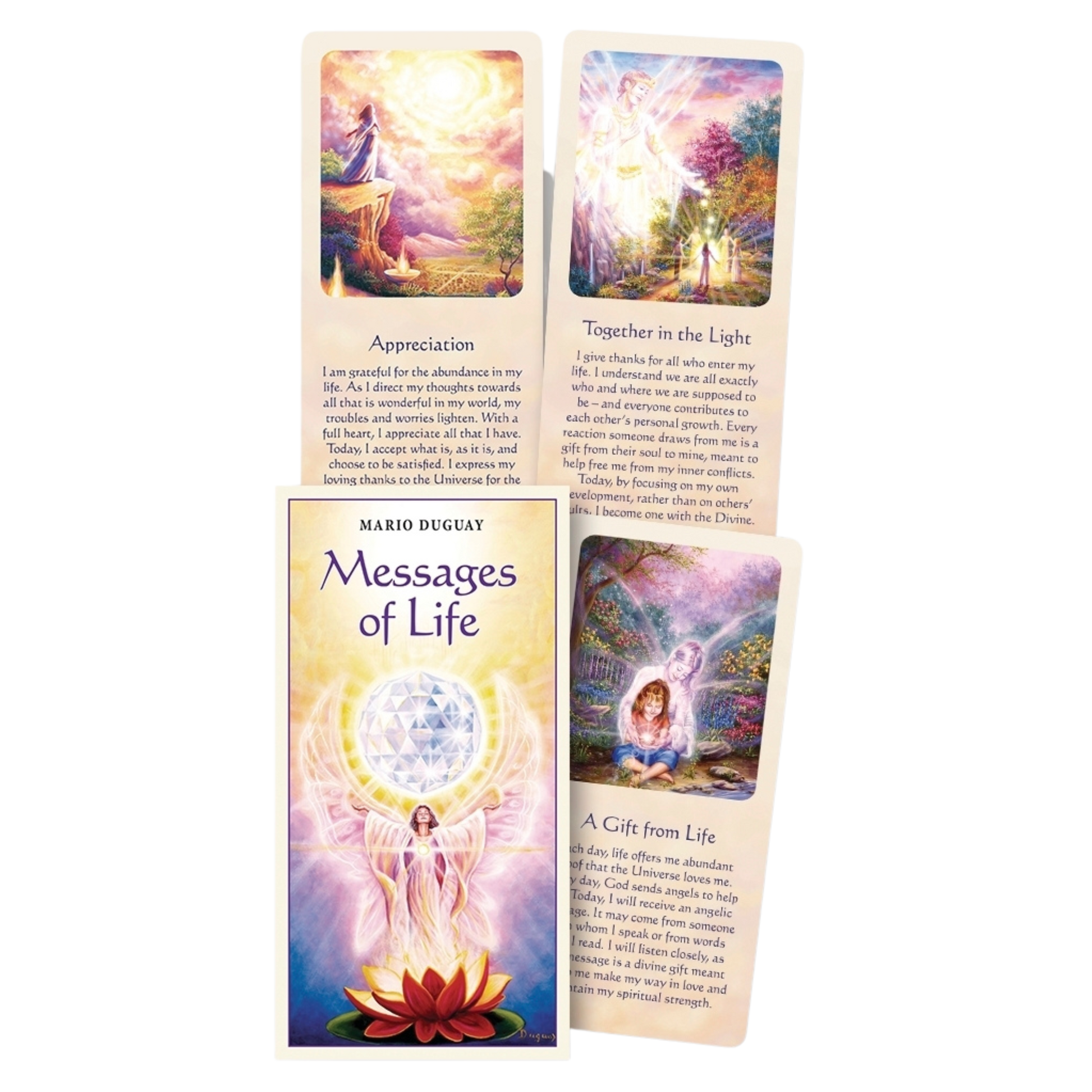 Enter an extraordinary world of color, magic, and hope with the Messages of Life Cards by Mario Duguay. The light-filled images and inspired text work together to turn on the divine within you. Meditate on the messages or repeat them as powerful, affirming mantras. Allow the enlightening artwork to lift your consciousness to insight, truth, and harmony. This deck is an invitation for you to realize the intimacy and beauty of spirit for yourself.