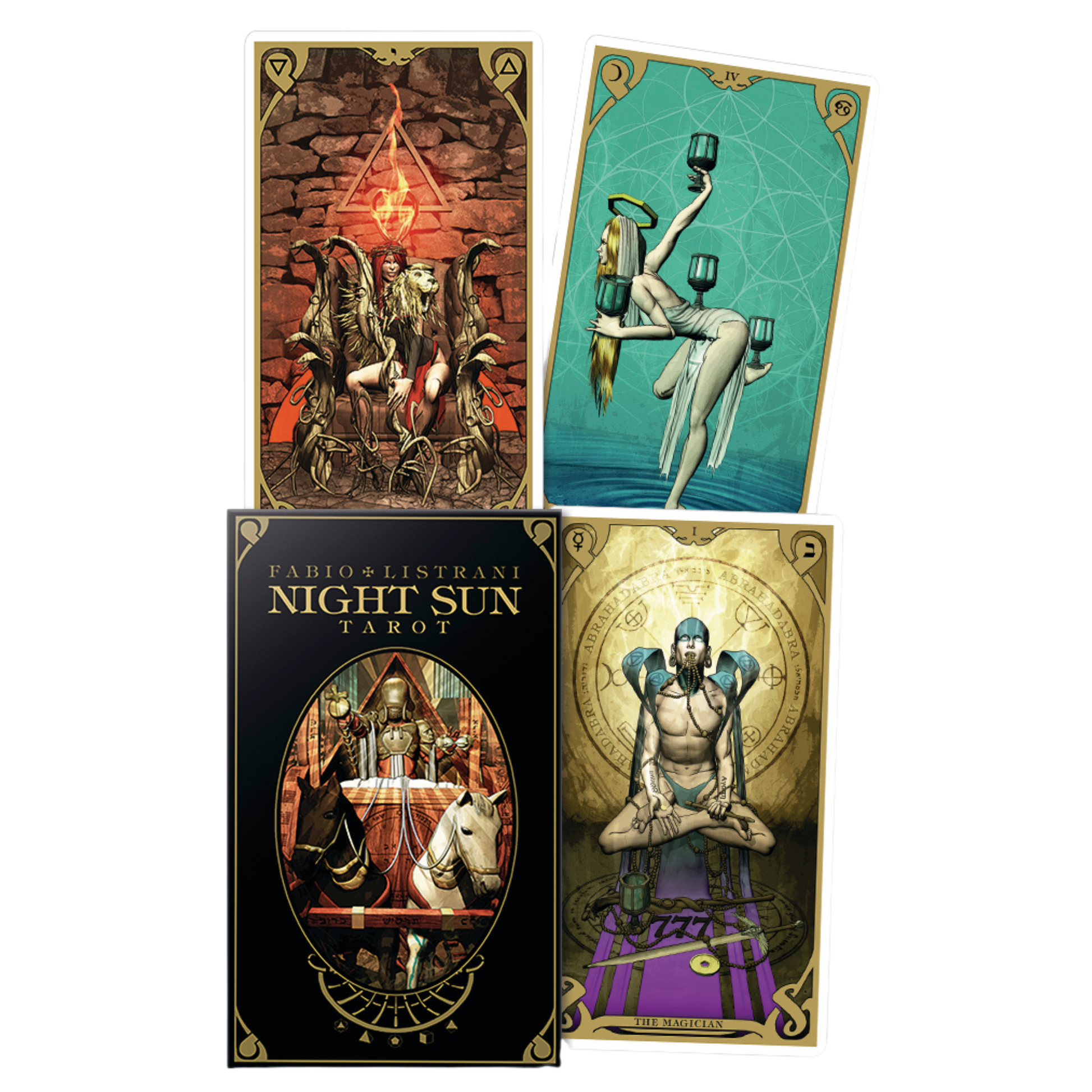 Enter into artist Fabio Listrani's rendering of the dance between the dark and the light, and begin a compelling journey into the realm of esoteric wisdom. Regardless of your level of occult knowledge, this deck will touch your soul and provide enlightening perspectives on the restless waters of the inner self. Filled with bold energy, rich art, and the passion of history's spiritual seekers, The Night Sun Tarot reflects the teachings of Aleister Crowley and the great occult masters.